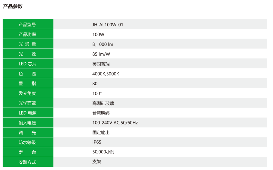 ●燈具光效100ImW,可替換250W金鹵燈。